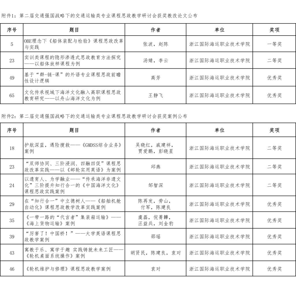 本次研讨会前期,开展了高等学校交通运输类专业课程思政教改论文和案例的征集评审工作。我校提前谋划面向全校征集课程思政优秀案例和优秀论文,由教务处和宣传部牵头组织专家评审,共择优推荐论文5篇,荣获一等奖1项、二等奖1项、优秀奖2项;推荐上报案例10个,获得二等奖3项、优秀奖5项,在所有参评高校中,无论是获奖数量还是获奖名次均是首位,实现了历史性突破。