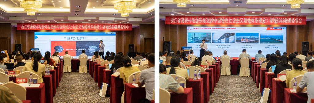 为学习贯彻党的二十大精神,加强思想政治理论课建设,展示教学改革与建设成效,推动提升教师的教学能力,7月7日至9日,由浙江省高校《毛泽东思想和中国特色社会主义理论体系概论》(以下简称《概论》)课程教学研究会、教育部全国高校思政课“手拉手”集体备课中心(浙江大学-浙江省)主办,我校协办的浙江省高校《概论》课2023暑期备课会在舟山召开。与会者“沿着总书记的足迹”,通过“红色根脉指导员”的精彩讲解和图文、实物、沉浸式剧场等形式,集体参观学习了全国生态文明村新建村和全国爱国主义教育基地舟山鸦片战争纪念馆等海岛上的红色文化资源,为《概论》课堂教学提供了鲜活的一线素材和情感体验。