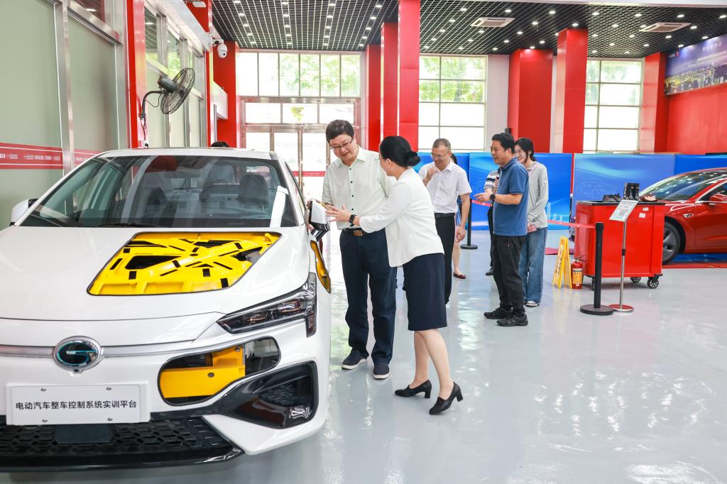 随后,在任惠霞书记带领下,苏为泽书记一行实地参观了特斯拉实训中心、飞机维修项目集训基地、宁德时代后市场人才培养基地等多个校内实训基地,双方就专业实训基地建设、校企合作模式、技能考评标准等多方面进行深入探讨。