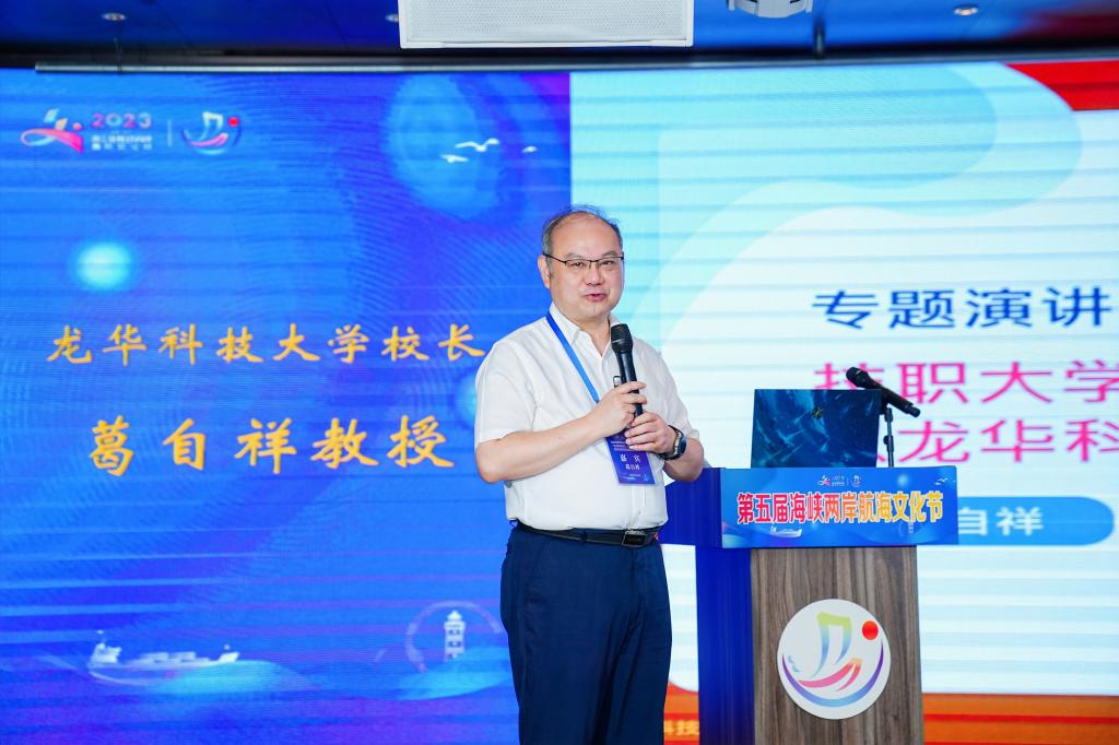 在专题讲座环节,南京静海寺纪念馆馆长苏真女士作《丝绸之路与郑和航海》讲座,回顾了郑和下西洋与中国古代航海的历史,让两岸学子深入了解海上丝绸之路,增强对航海文化的深层理解。台湾龙华科技大学校长葛自祥教授讲授了《技职大学的经营与发展:以龙华科技大学为例》专题讲座,结合龙华科技大学的办学成果和特色,阐述了“大学应更重视学生职场伦理与正确态度之养成教育”的理念和内涵。