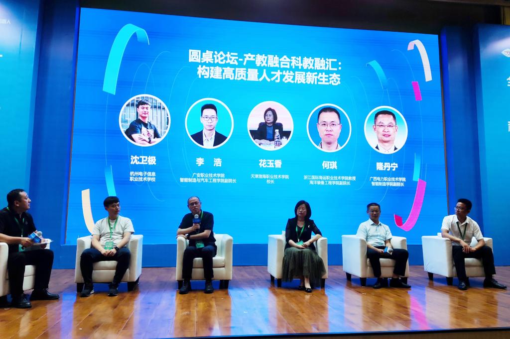 在圆桌论坛环节,海洋装备工程学院副院长何琪受邀交流分享了我校机器人相关专业以及现场工程师人才培养项目,创新产教融合、校企合作、科教融汇,构建高质量人才发展新生态的经验。(海洋装备工程学院)
