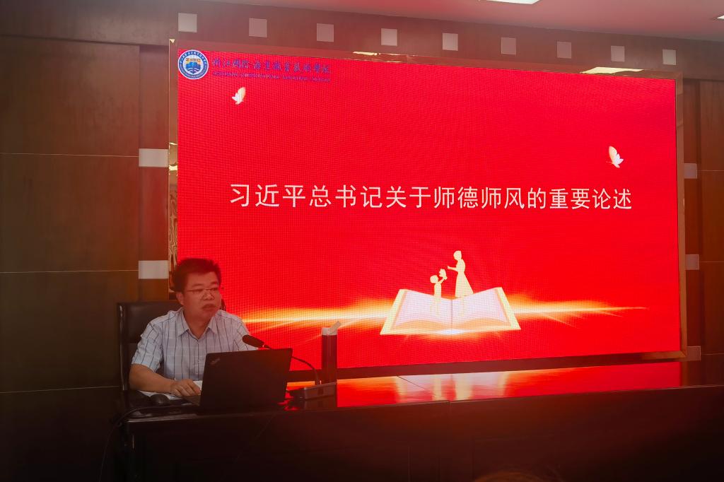 随后,由各相关职能处室负责人从学校质量管理体系、师德师风专题学习、教师职业资格申请和专业技术职务评审、学生管理规范、教师廉洁从教等方面进行了专题培训。培训会上,新教师签订了《师德承诺书》。