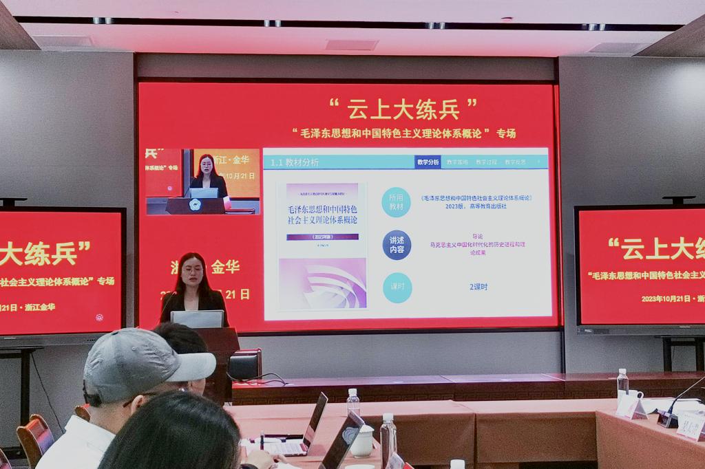 10月21日下午,马克思主义学院思政课教师何丽丽参加由金华职业技术学院承办的教育部第三届全国高校思想政治理论课教学展示备赛磨课《毛泽东思想和中国特色社会主义理论体系概论》(以下简称《概论》)课专场活动。
