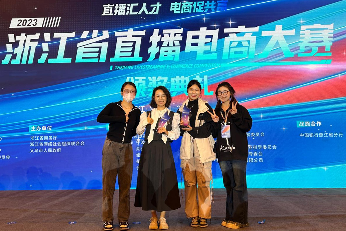 在学校致远创业学院、现代港口贸易学院领导们的大力支持下,充分发挥学校大学生创业园的辐射作用,为学生提供辅导、培训和实践的机会,由现代港口贸易学院罗兰老师指导,我校2021级商务英语1班郑奕楠同学与大舟山达人娜娜、运营小郑、奋斗传媒达人马秀两支团队合作代表舟山出战。初出茅庐但不畏强手,作为年龄最小的参赛选手和非专业学生,利用实习期休息时间,反复与老师沟通,和团队复盘训练,最终成功获得省2023电商直播大赛“直播之星”优胜奖。(致远创业学院、现代港口贸易学院)