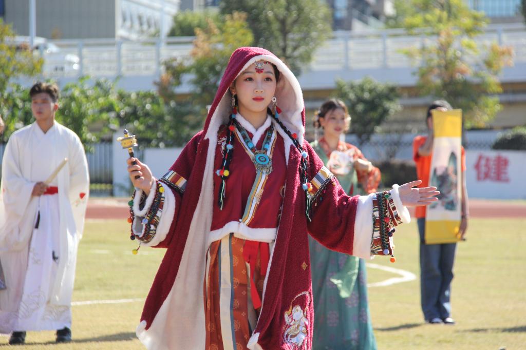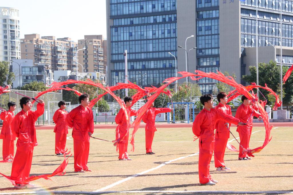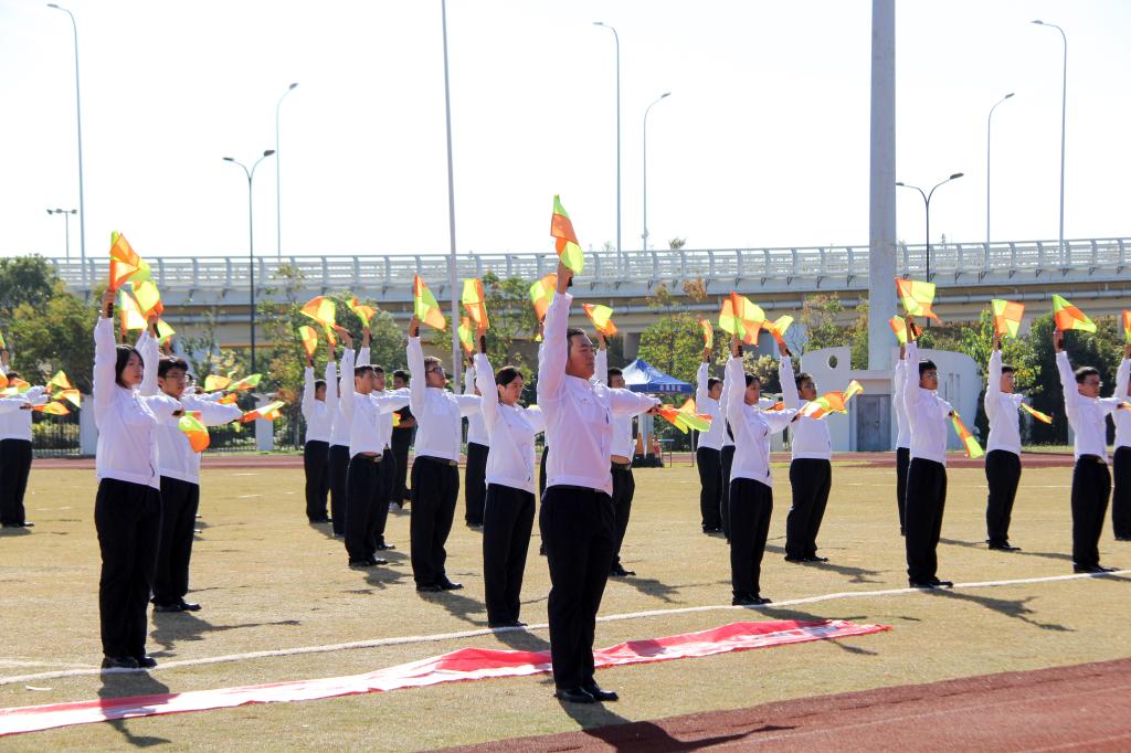 在动感活力的开幕式表演环节,校领导和师生们欣赏了啦啦操、旗语、船拳、国风秀等集体表演。精彩的演出充分展示了海运学子青春激昂的精神风貌,赢得了观众阵阵欢呼,现场气氛热烈。