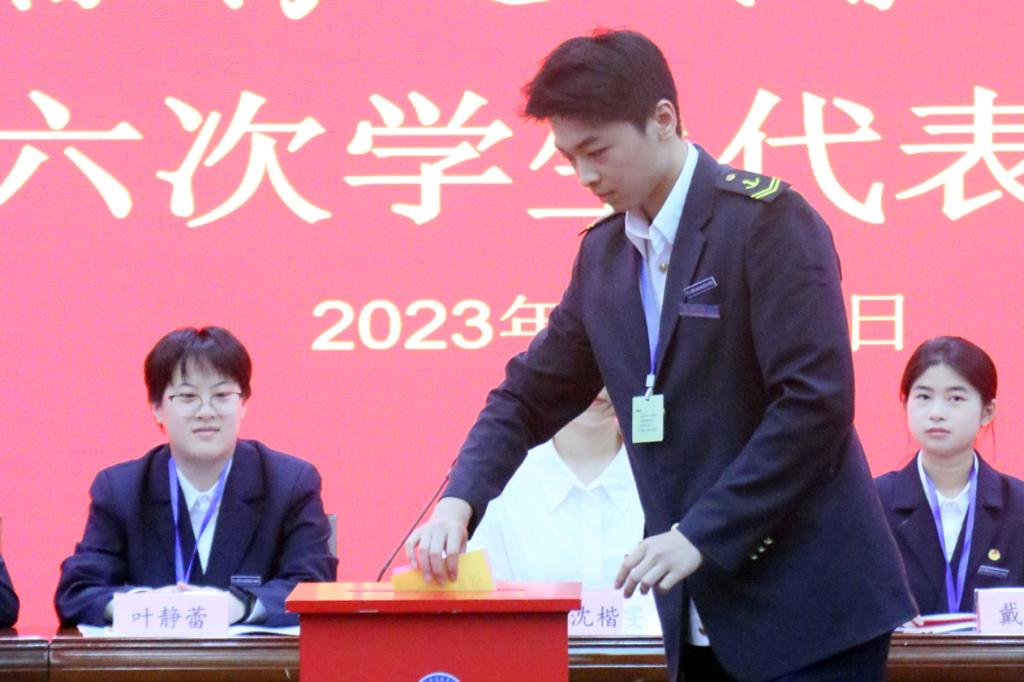 会议选举产生了主席团成员5名,委员会委员11名。丁晴宇、木国羽、卞婕、计勤晴、刘忠宝、陈清清、竺康杰、夏磊、高敏、傅利辉、戴丁怡同学当选为学校第六届学生委员会委员,木国羽、计勤晴、竺康杰、夏磊、戴丁怡同学当选为学校第六届学生会主席团成员。