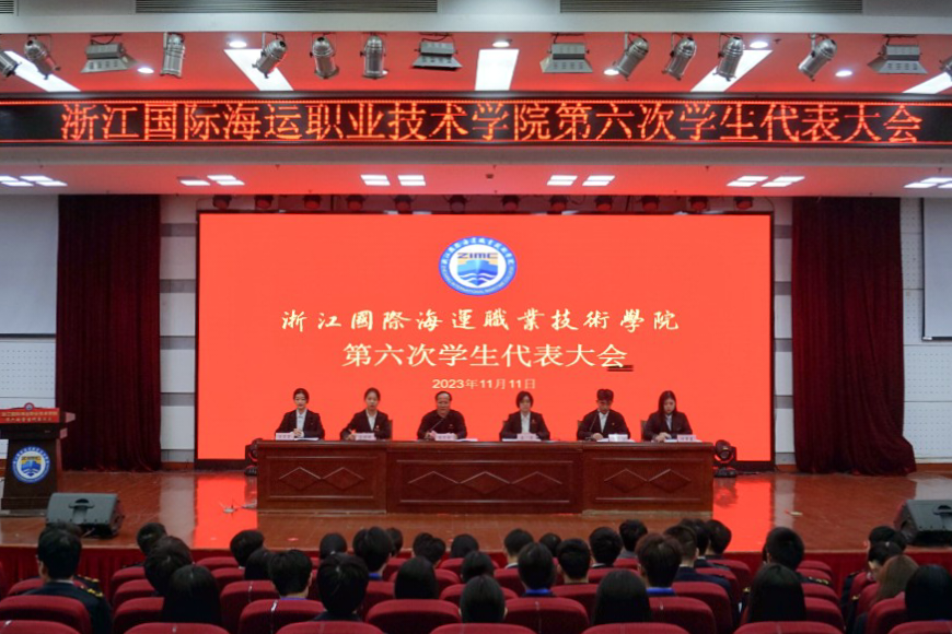 11月11日,我校第六次学生代表大会在董浩云图书馆四楼报告厅隆重召开。校党委副书记孔志光,浙江舟山群岛新区学生联合会执行主席汪笑笑,浙江舟山群岛新区旅游与健康职业学院学生会执行主席周远扬,校团委书记金洁、校团委副书记余娜娜、各二级学院团委负责人和103名学生代表出席会议。