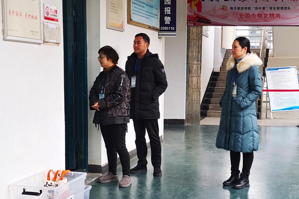 12月16日-17日,2023年下半年全国大学英语等级考试在我校顺利举行。本次考试我校共安排考场69个,其中岱山校区安排考场6个,考生2020人;选聘监考老师和考务人员171人次。副校长李丽,教务处处长郑燕华、副处长陈再发对本部校区的考场进行了巡视督查。