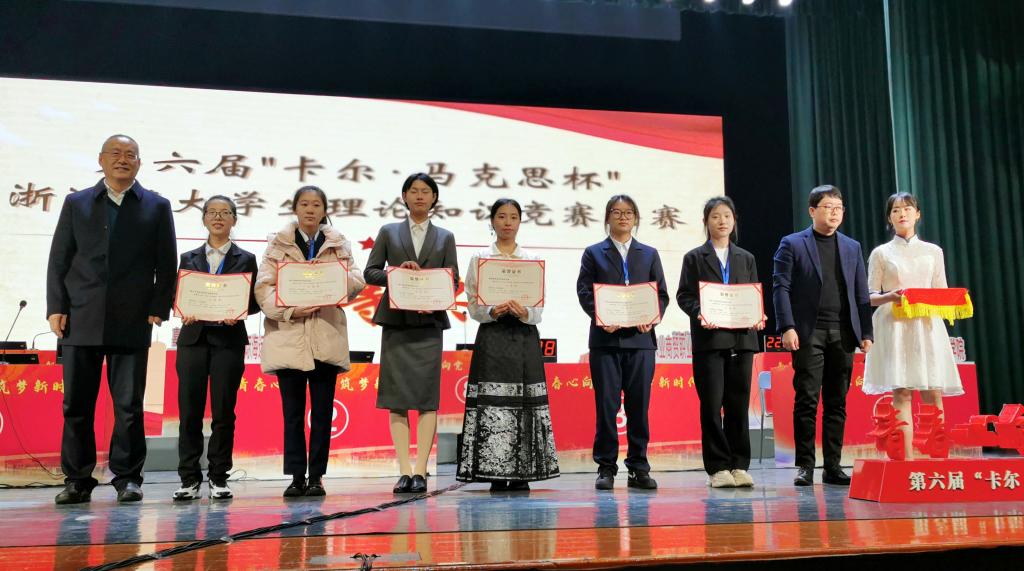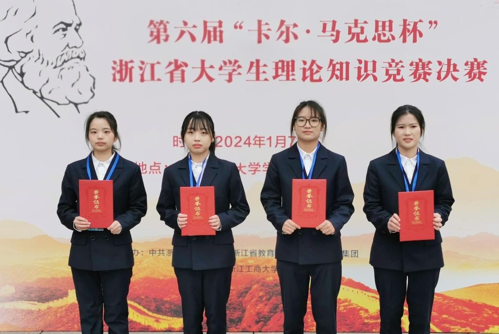 1月7日,第六届“卡尔·马克思杯”浙江省大学生理论知识竞赛决赛在浙江工商大学举办。我校由金佳怡、干文涵、徐李锦、陈玲玲、陈奕蓉五名学子组成的参赛队伍从全省100多所参赛高校、70余万大学生中突出重围,荣获高职高专组二等奖;陈艳霞、李文文、徐盈三位教师获优秀指导教师奖。这是我校首次入围决赛,并取得了在该赛事的历史性突破。
