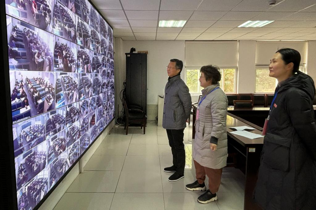 1月15日-17日,我校2023-2024学年第一学期期末考试工作顺利完成。15日,校长吴中平、副校长李丽带队到教学监控中心对全部考场进行视频巡视,并深入考场对考试安排、考场秩序、监考情况、学生携带证件等方面进行细致检查和指导。校领导要求,一定要严肃考风考纪,监考人员要严格执行考试流程,确保考试公正、公平。