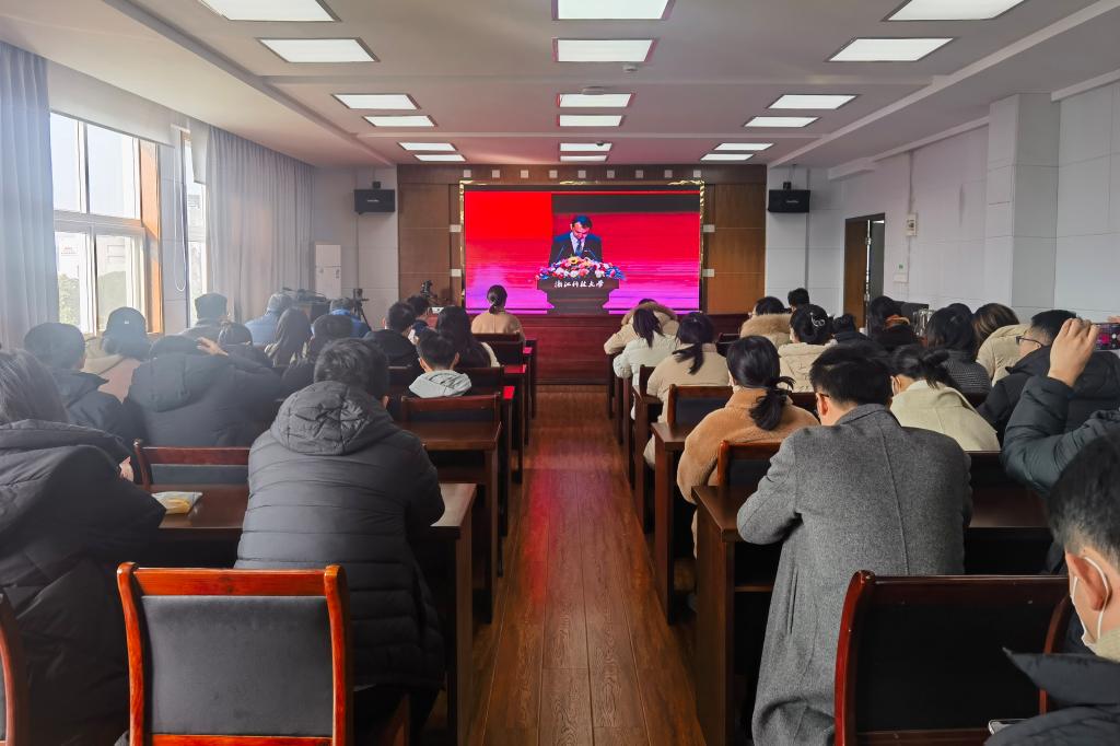 3月3日上午,由教育部组织开展的全国优秀教师代表“教育家精神”2024年巡回宣讲浙江场在浙江科技大学举行,我校通过线上线下相结合的方式组织全体教职工共同收看直播。