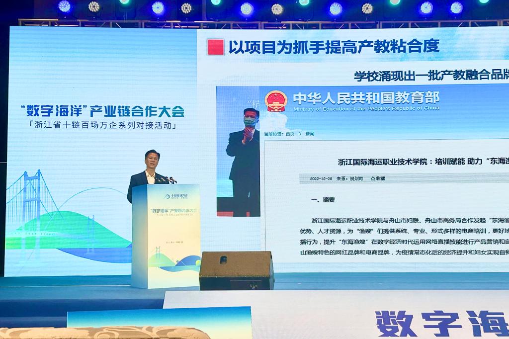 强化产教深度融合,拓展完善学徒班、订单培养、现代学徒制等形式的校企合作,1个项目列入教育部“供需对接就业育人”项目名单。学校获评全国首批“教育部1+X实用英语交际职业技能等级证书产教融合协同育人全国示范基地”,被授予教育部“1+X”职业技能等级证书考核认证基地,荣获“优秀试点院校”称号,3个项目入选省产教协同育人项目,获评省级访问工程师校企合作项目二等奖,2023届毕业生技能等级证书获取率约99%。启动“百千服务行动计划”,约70名教师、1000名以上学生按照要求入企,为舟山企业科技创新和产业升级“献智”。学校荣任全国跨境电商产教融合共同体第一届常务理事单位。入选《2023中国职业教育质量年度报告》东部地区50所产教融合卓越高等职业学校。