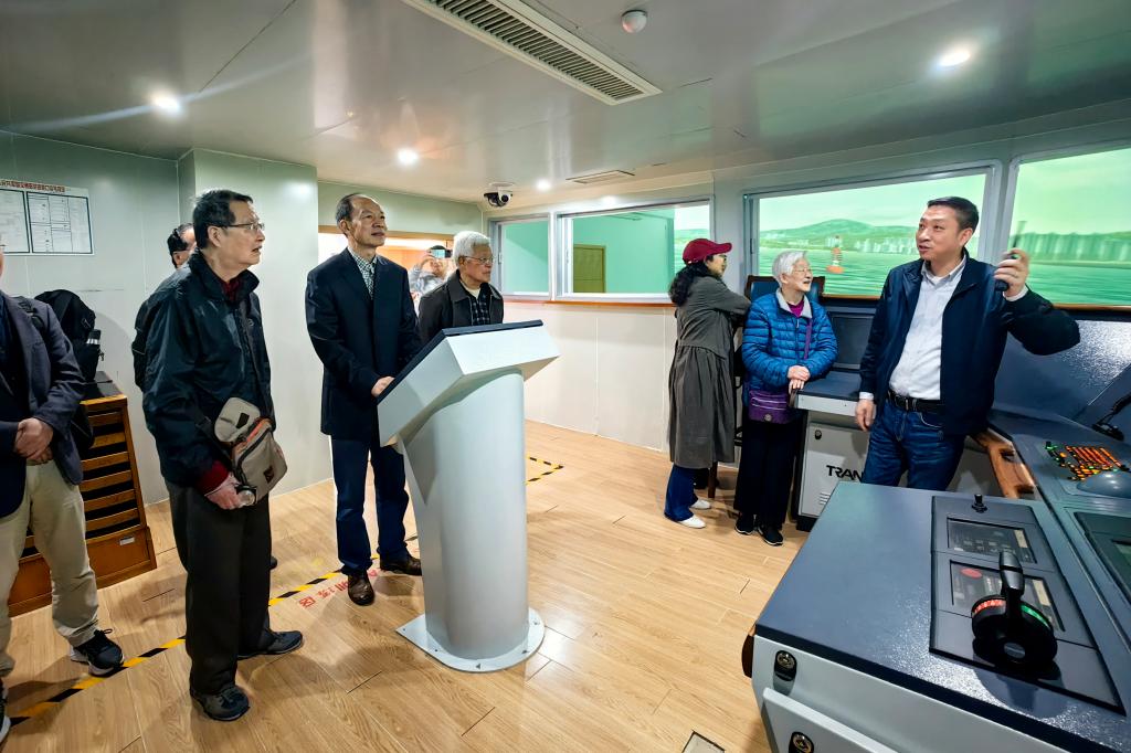 随后竺树声一行先后来到航海操纵模拟器、游艇模拟器、航海虚拟仿真中心、船舶知识馆等地参观。(办公室)