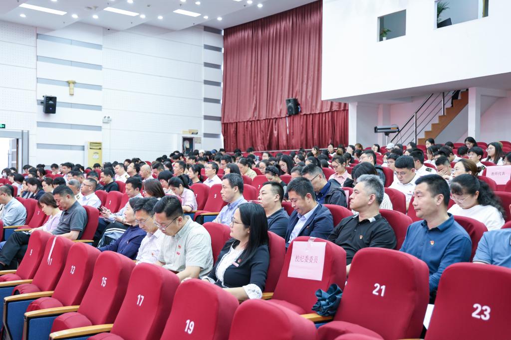 为推动党纪学习教育走深走实,根据学校党纪学习教育工作安排以及第七轮干部聘任实际,5月31日下午,党委书记苏为泽围绕加强党的纪律建设讲授党纪学习教育专题党课并作集体廉政谈话,全体班子成员、中层干部、党纪学习教育专班和部分教师代表、学生代表参加,党委副书记孔志光主持。