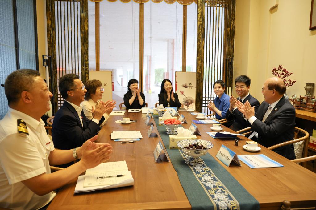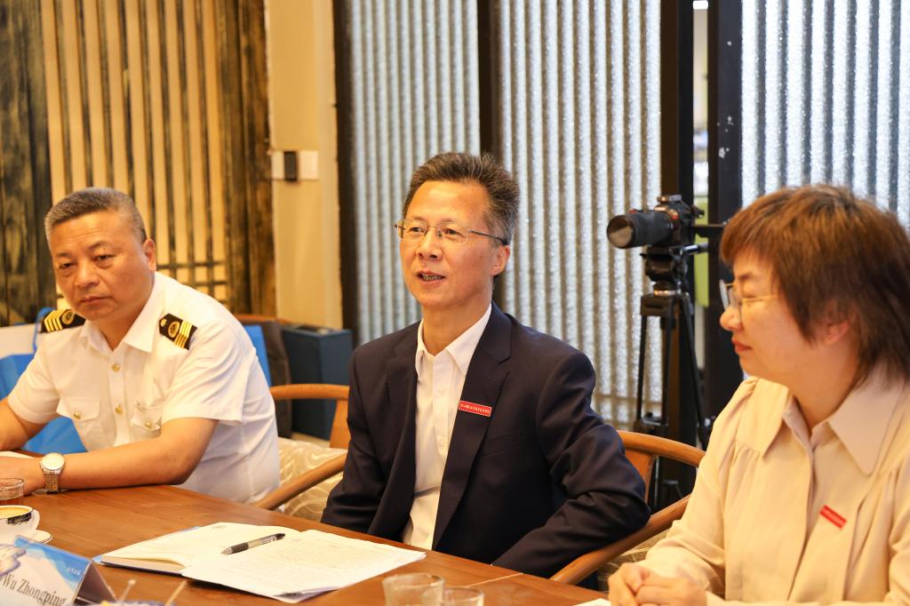 随后,林基泽先生来到海邮驿站与学校领导进行了亲切交流。吴中平校长对林基泽先生来访我校表示热烈欢迎,并介绍了我校的办学历史、办学特色、发展现状及近年来取得的办学成效等。期间,林基泽先生仔细询问了我校与世界知名航运企业的合作情况,培养的学生在航运业中的就业情况等,他对我校办学成果给予了高度肯定,充分认可我校为世界航运业输送了大批职业能力强、敬业精神好的优秀船员贡献了重要力量。