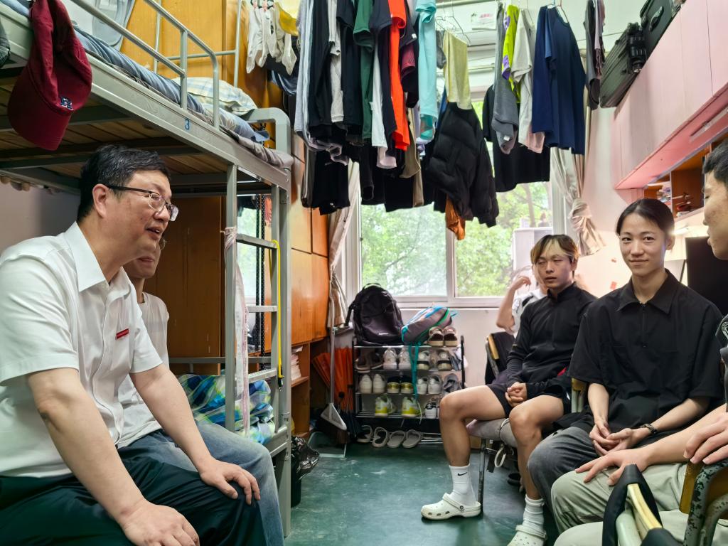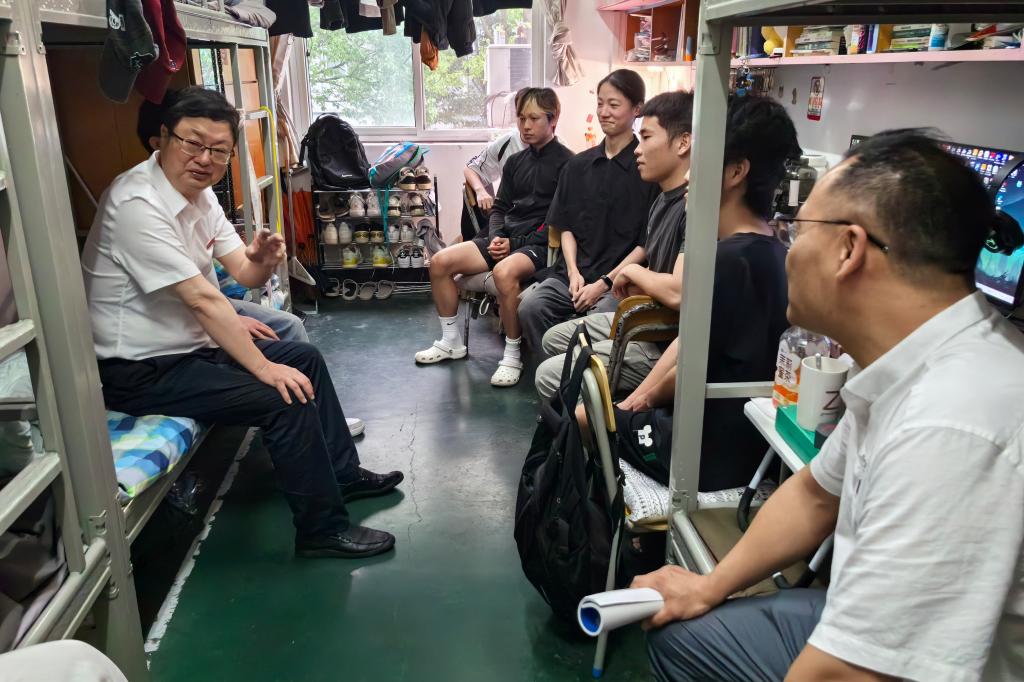 6月17日下午,校党委书记苏为泽深入学生寝室走访看望学生。苏为泽书记与同学们亲切交流,关心他们在校的生活学习情况,并亲切叮嘱要注意寝室用电、电瓶车规范充电等消防安全,同时提高防诈意识。
