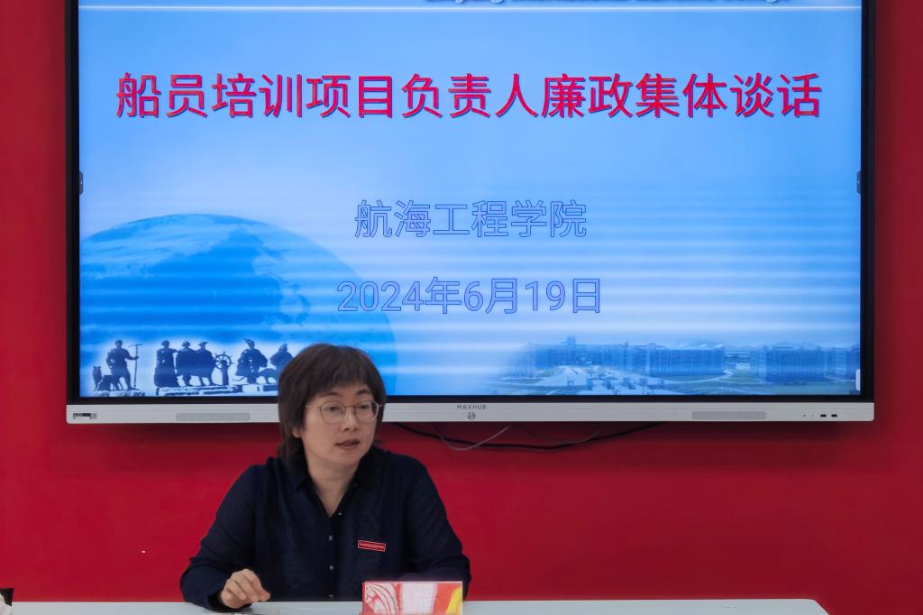 李丽副校长对船员培训项目负责人进行了集体谈话。她指出,廉政谈话既是学校党风廉政建设的基本要求,更是正确分析研判船员培训工作廉政风险、保障船员培训工作健康向上的内在需要。她希望全体船员培训项目负责人,继续发挥好船员培训工作中的核心作用,守规范、求实效,尽职尽责做好本职工作;守牢廉政底线,不碰高压线;持续开展廉政教育,形成常态化工作机制。