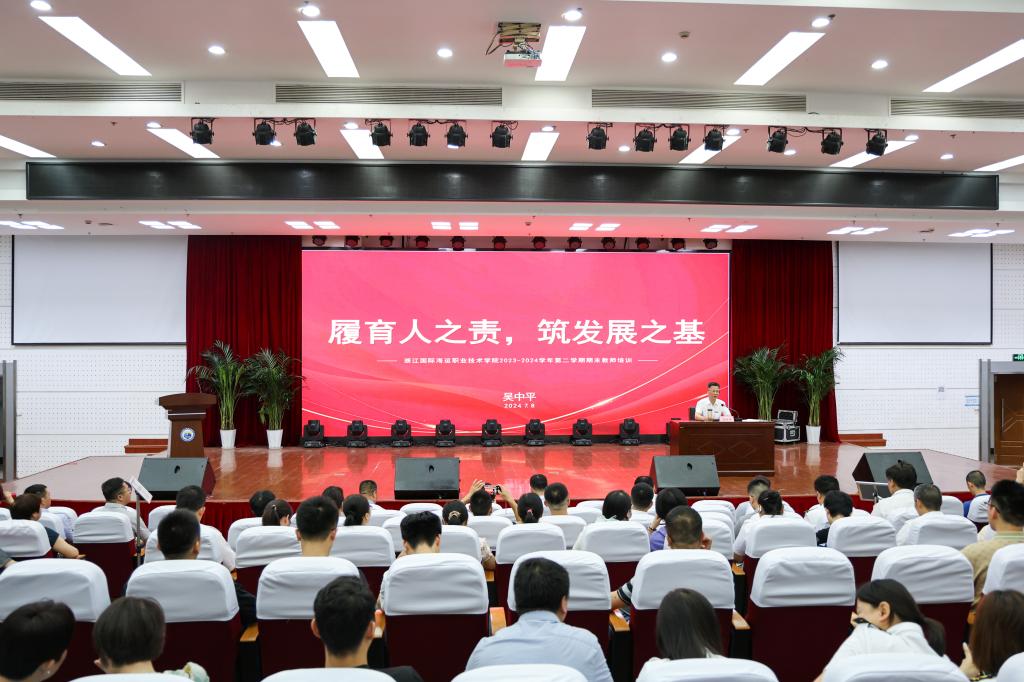 本次教师培训第一课由学校党委副书记、校长吴中平作《履育人之责,筑发展之基》专题讲座。讲座紧紧围绕教书育人是教师的基本职责、学校发展的基础是教师、教师履职促发展中应该重视几个方面进行阐述,鼓励全校教师要树立信心,要加强学习、注重创新、爱校爱生,要身正为范,希望老师们要弘扬教育家精神,牢记为党育人、国家育才的初心使命,自信自强,踔厉奋发,为学校高质量发展作出更大的贡献。