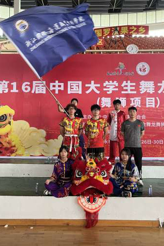 这是我校学生首次参加全国大学生龙狮锦标赛。自6月初参加省第十一届龙狮锦标赛以来,我校舞狮团队在教练张恒卫老师的带领下,利用休息时间和假期集训,同学们克服困难,团结协作,不断提高技术水平,最终取得了可喜成绩。