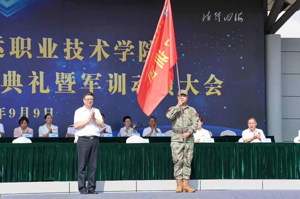 典礼结束后,校党委书记苏为泽为2024级新生军训团授旗,并宣布军训正式开始。