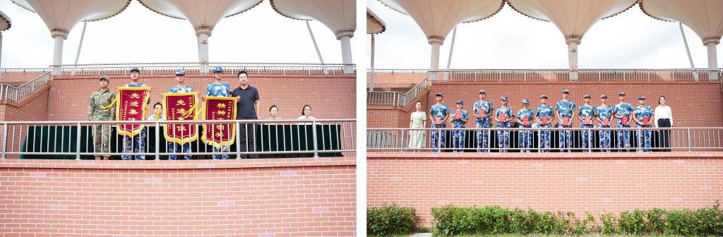 主席台领导向优秀班助、军训先进集体奖代表、军训集体精神文明奖代表、军训寝室内务优胜奖代表、军训先进个人等颁发荣誉证书,表彰数天来一直坚守在训练一线的军训教官助理和优秀训练标兵。