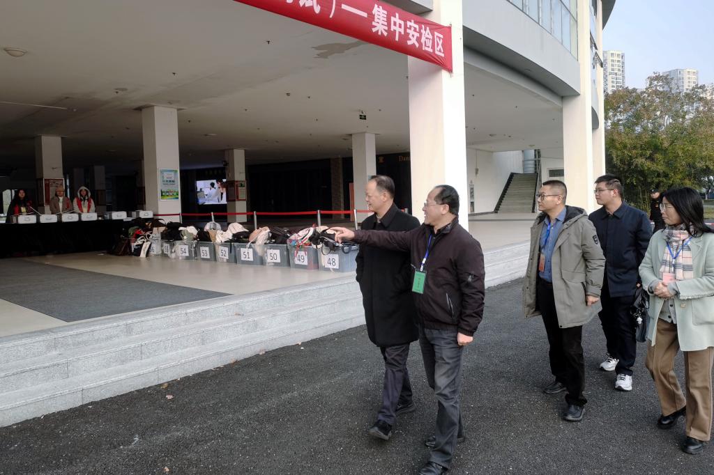 12月20日下午,校党委书记苏为泽、党委副书记孔志光,副校长李丽、曹志斌带领相关部门负责人到图书馆一楼集中安检区、考场区以及视频监控中心等相关场所检查指导考务准备工作,要求提高政治站位,提高服务意识,落实安全稳定责任,力争高质量、高标准完成研考考务工作。