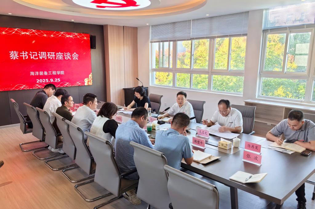 9月25日,校党委书记蔡志军到海洋装备工程学院走访调研,党委副书记孔志光,教务处、办公室等部门负责人陪同。海洋装备工程学院行政班子、专业团队长(负责人)骨干教师等参加座谈会。