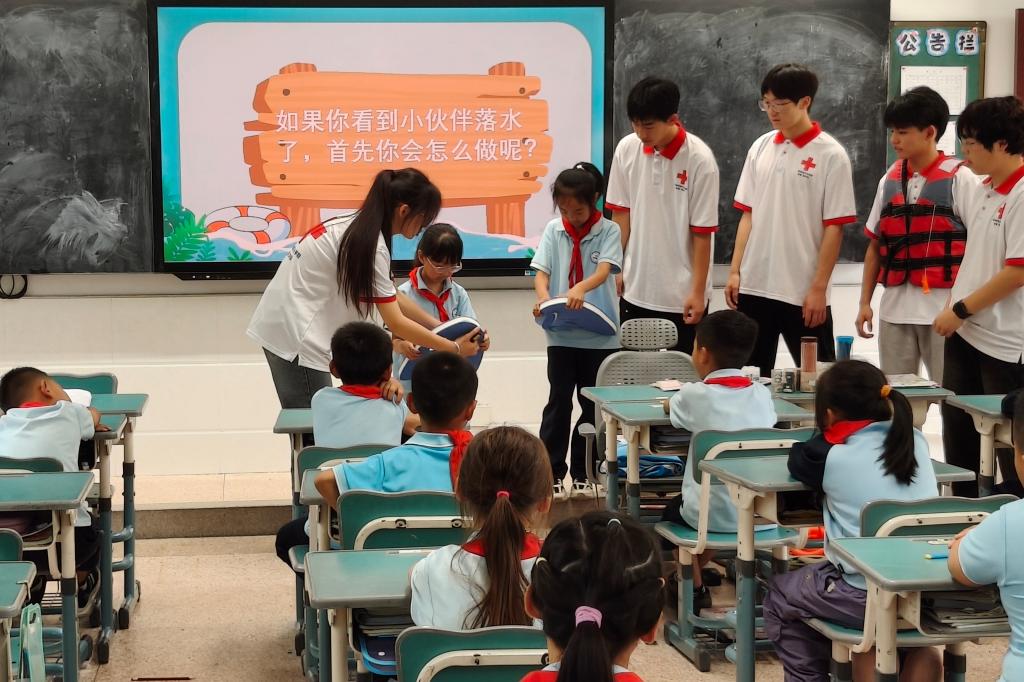 为增强宣传效果,岱山校区“平安守护联盟”社团成员也积极参与其中,他们协助实践团成员与孩子们进行互动交流,耐心倾听孩子们的提问并给予解答。在场的孩子们热情高涨,积极参与到各个环节中,纷纷举手发言,分享自己学习到的防溺水知识,现场气氛热烈非凡。