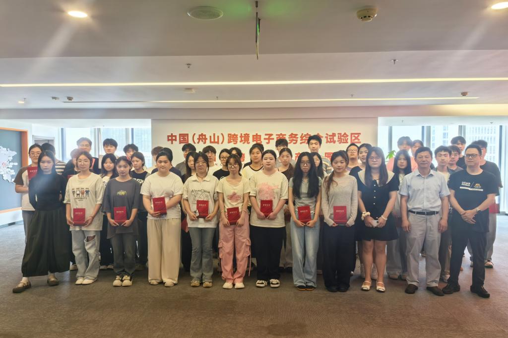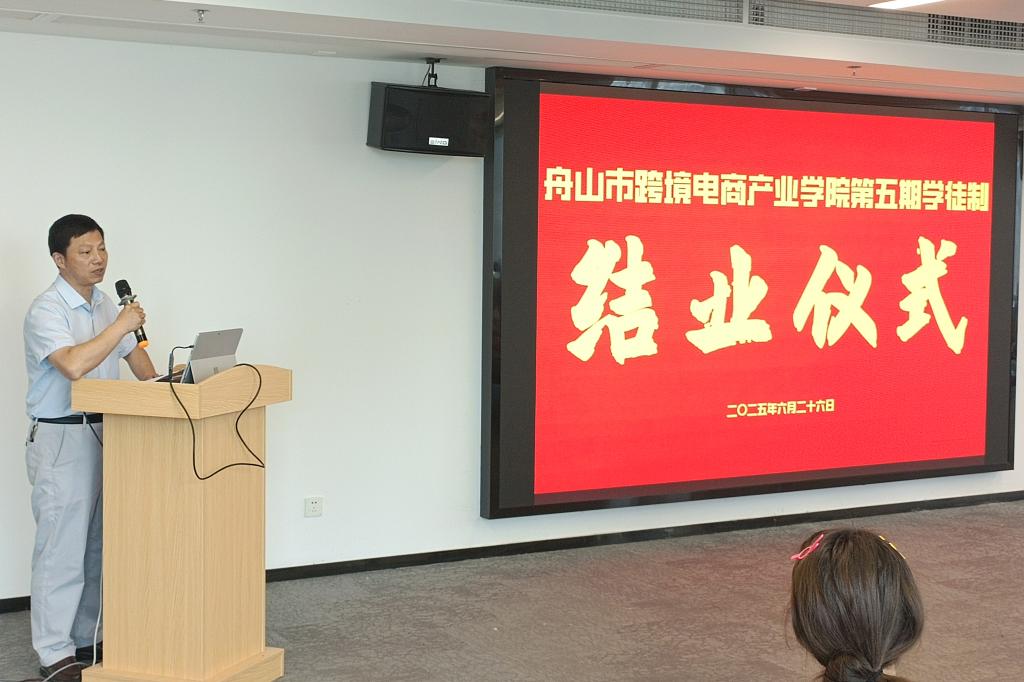 6月26日,舟山市跨境电商产业学院第五届学徒班结业典礼在舟山市跨境电子商务综合产业园举行。现代港口贸易学院院长王贵斌、舟山同泽科技有限公司总经理汪新有以及50余名师生共同出席了本次结业典礼。