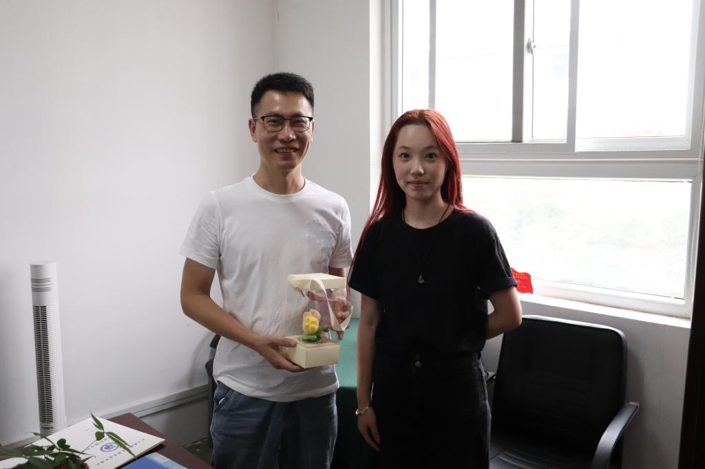 9月10日当天,学生代表分组走进办公室,将亲手制作的花艺作品逐一送到老师手中。收到这份充满心意的礼物,老师们的脸上洋溢着笑容。