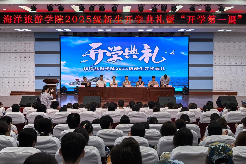 9月16日,海洋旅游学院2025级新生开学典礼暨“开学第一课”在图书馆四楼报告厅举行。学院班子成员、团队负责人、2025级新生班主任、辅导员以及全体2025级新生参加。典礼由学院党总支副书记管建民主持。
