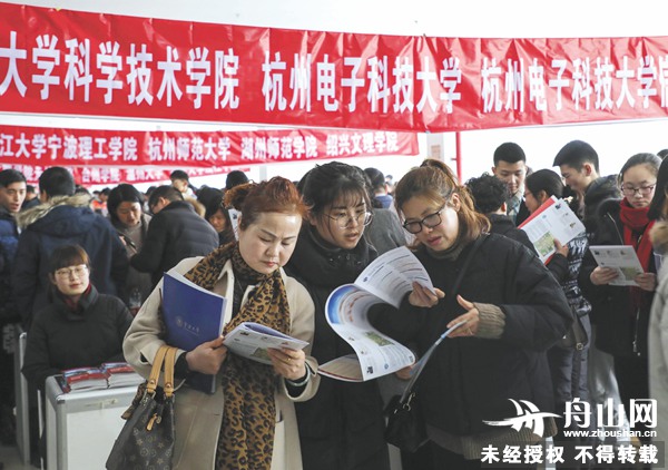招生咨询会现场,不时有一些省内各校的招生办工作人员,把自家的招生简章发放给过往的考生和家长,热情招揽未来的人才。而考生和家长们,往往怀抱各种招生简章,或者低头查阅,或者聚在一起讨论研究。记者在采访中发现,学科特色、就业方向、报考条件这3个问题是考生和家长们最关心的。“在选择未来的方向时,一定要谨慎考虑,选择适合自己的专业。”浙海职院招生办负责人这样建议。