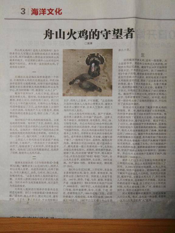 《今日定海》:舟山火鸡的守望者