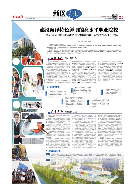 未来五年,浙海职院将高举习近平新时代中国特色社会主义思想伟大旗帜,以国家发展战略和区域经济社会发展需求为导向,以治理体系建设为动力,以高水平专业群建设为重点,以服务学生发展为宗旨,以“十四五”规划编制为契机,加快办学体制机制创新,不断提高人才培养质量标,积极融入和服务“重要窗口”海岛风景线建设,加快推进海洋特色鲜明的高水平职业院校建设。