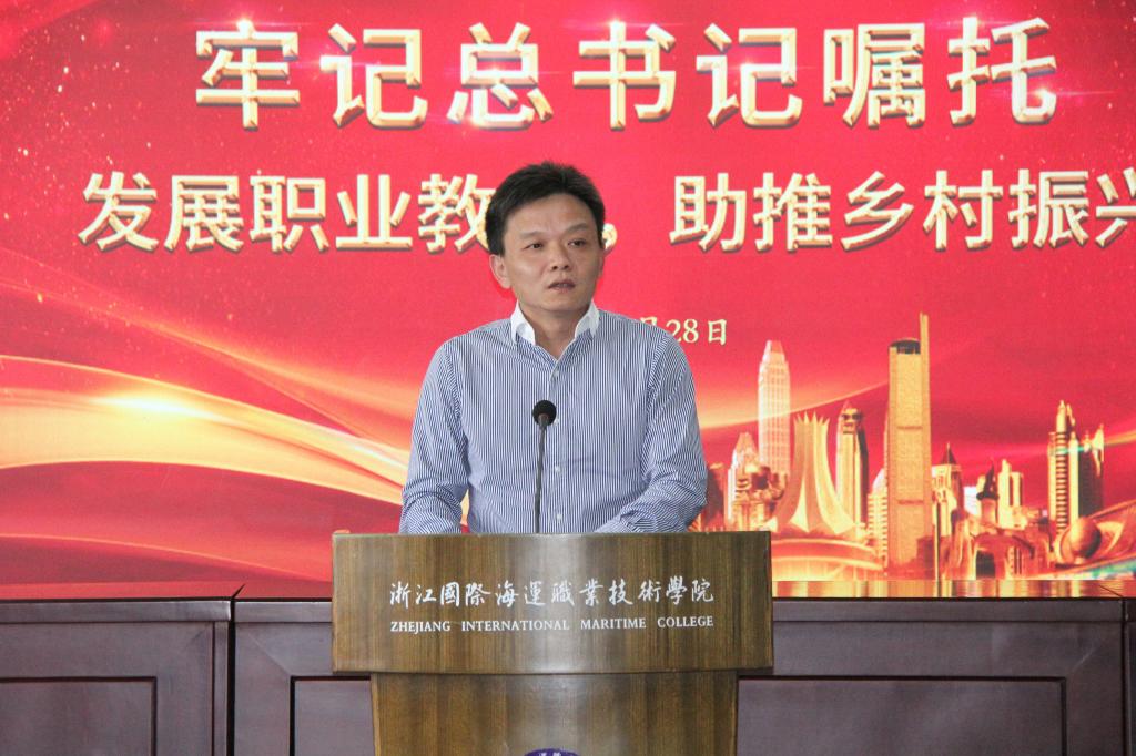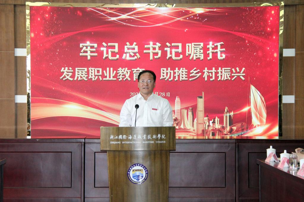 学院党委书记苏为泽最后发言,他说,召开“牢记总书记嘱托,发展职业教育,助推乡村振兴”座谈会,是为了深入学习习近平总书记视察我校的讲话和指示、学习习近平总书记关于职业教育的批示精神,更好地服务舟山、服务自贸区和国家战略、服务基层和乡村振兴工作。浙海职院一定要立足海洋、立足舟山、立足浙江。高职学校不同于研究型高校,也不同于中职学校,要有自己的定位、特色,要结合地方产业、区域实际办好专业,坚持校地合作、产教融合,培育优秀人才。发挥学历教育和职业培训优势,要为舟山渔农民转产转业,要为浙江建设海洋经济强省服务,力争为国际航运业输送高质量、船务公司满意的国际海员,强化政治性、时代性、融合性,助推乡村振兴、涉海产业振兴。
