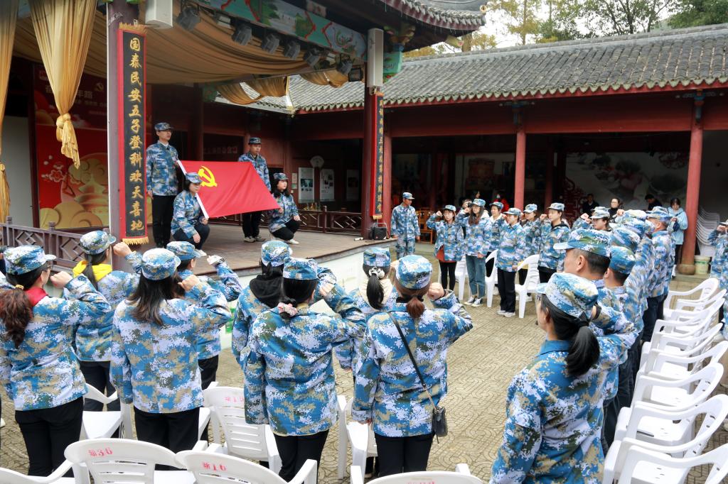 “重走长征路”体验活动中,党员同志们跟随教官共同进行了各项党史学习教育体验活动,聆听新建村老党员讲村史,深情合唱入党誓词歌,同吃忆苦思甜饭,进一步坚定学党史,感党恩,跟党走。