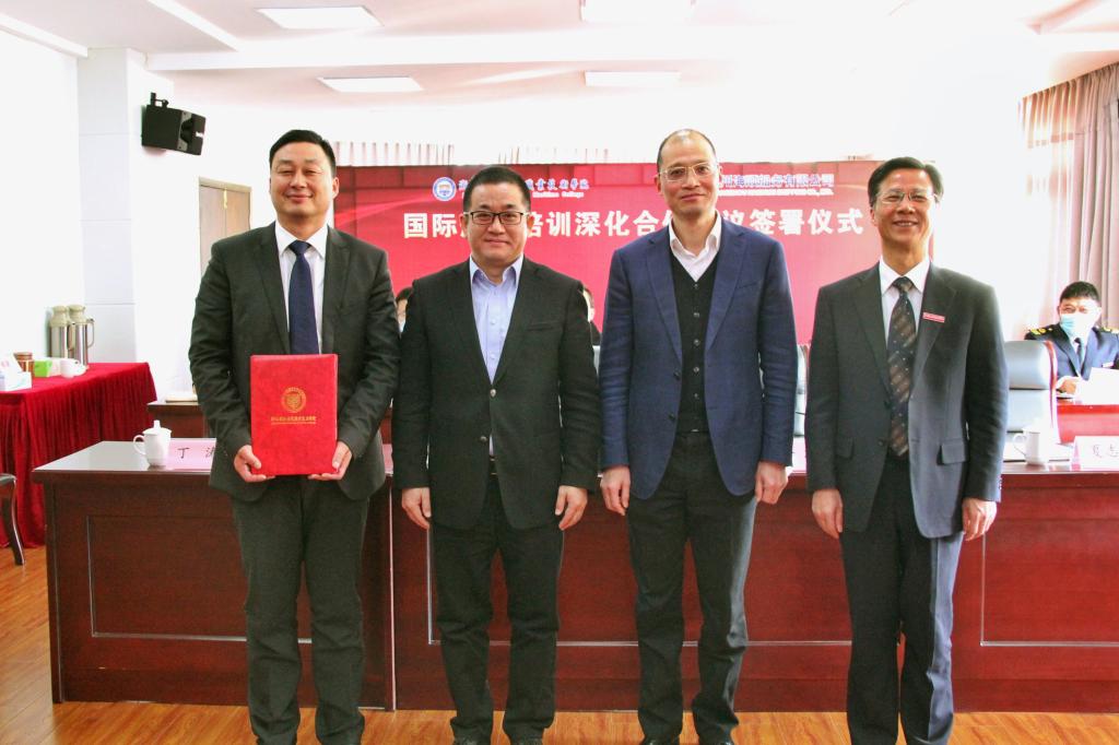 在与会人员的共同见证下,浙海职院与广州海顺船务有限公司共同签署了国际船员培训深化合作协议。