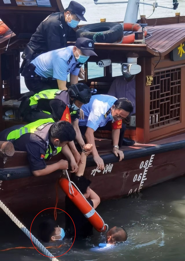事发当天下午1时许,正在杭州市水上巴士公司实习的陈瀚涛听到呼喊“有人落水了!”来不及细想,陈瀚涛立刻飞奔过去,发现有一位妇女,双手挥动着,正在水中浮浮沉沉……