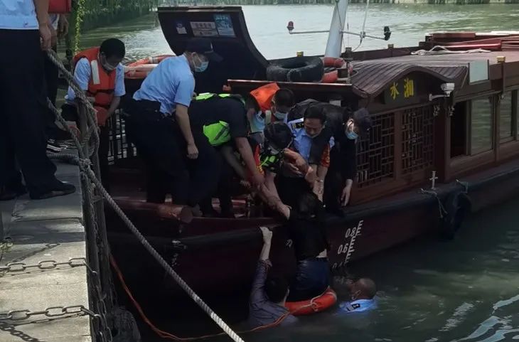 期间,陈瀚涛奋力拖拽了10多分钟,仍然无法将落水者彻底救出,期间围观群众虽然送来绳索、救生圈等物品,但是单手拉拽的他,已近力竭,幸好此时另一位船老大及时帮助,众人合力将女子救上船。
