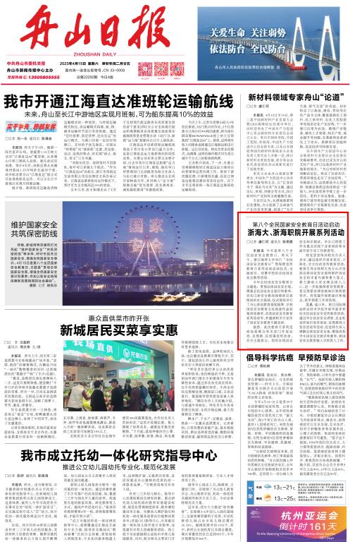 《舟山日报》:第八个全民国家安全教育日活动启动 浙海大、浙海职院开展系列活动