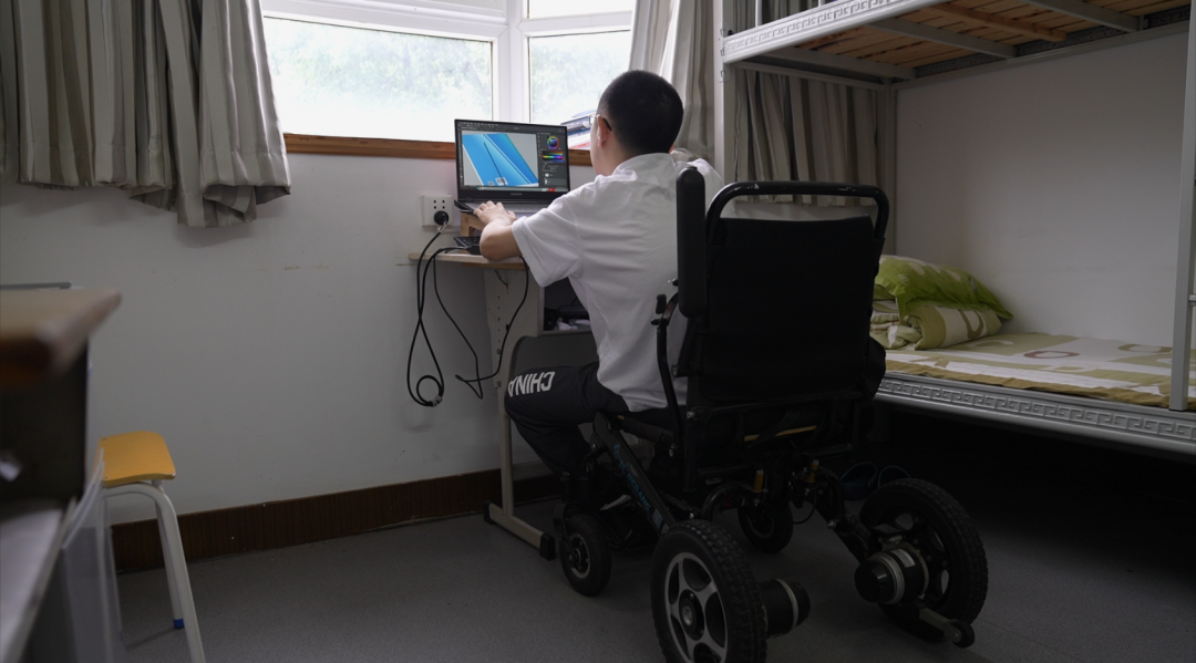 由于行动不便,王琪沣的妈妈多年来一直陪在他身边照顾。了解情况后,学校用心安排了小王入校后的诸多生活学习细节:为母子俩专门安排了一间位于一楼的无障碍宿舍,同时改造了教学楼设施,增设了多处无障碍通道,方便轮椅进出。