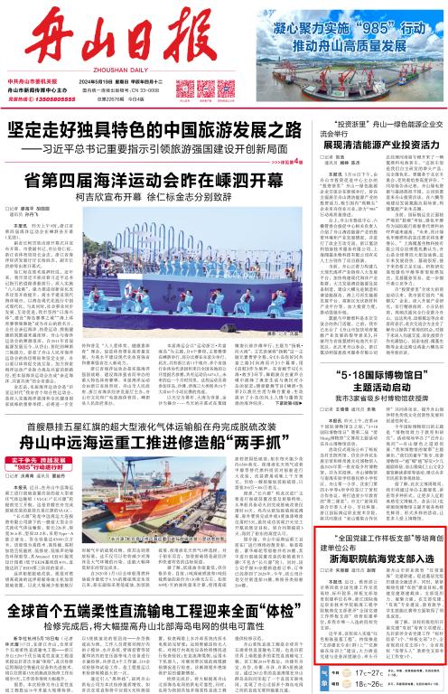 (2024年5月19日《舟山日报》头版 https://epaper.zhoushan.cn/html/2024-05/19/content_145340_813529.htm)