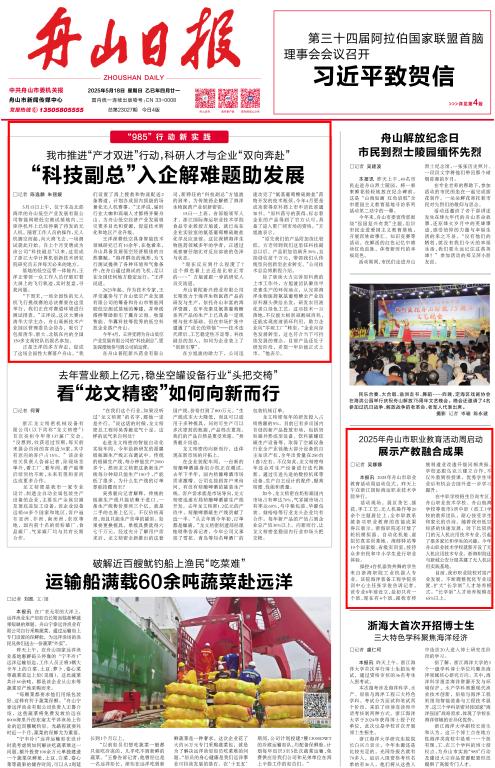 (2025年5月18日《舟山日报》头版)