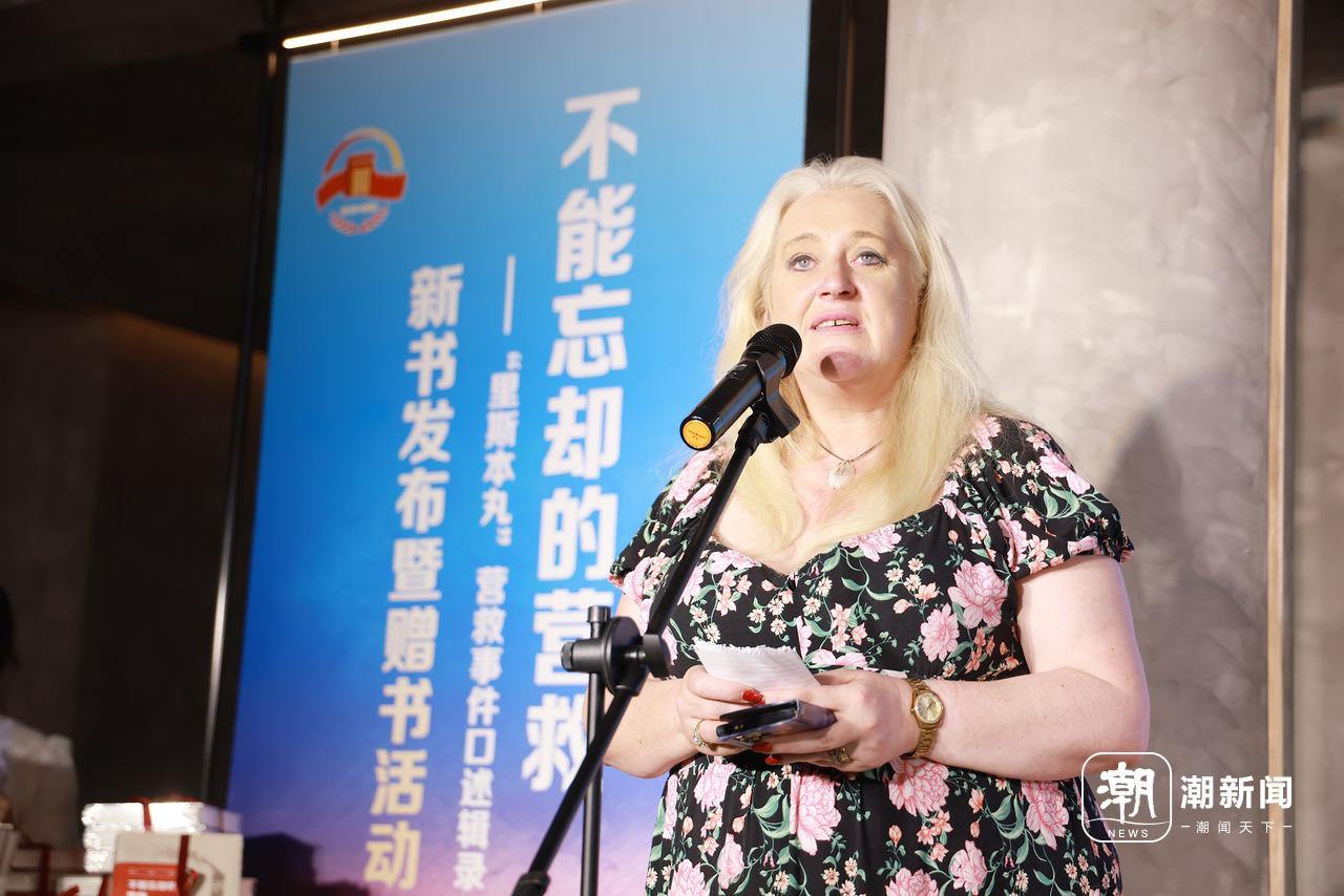 “里斯本丸”沉船事件幸存者莫利的女儿维尼向记者展示获赠书籍。