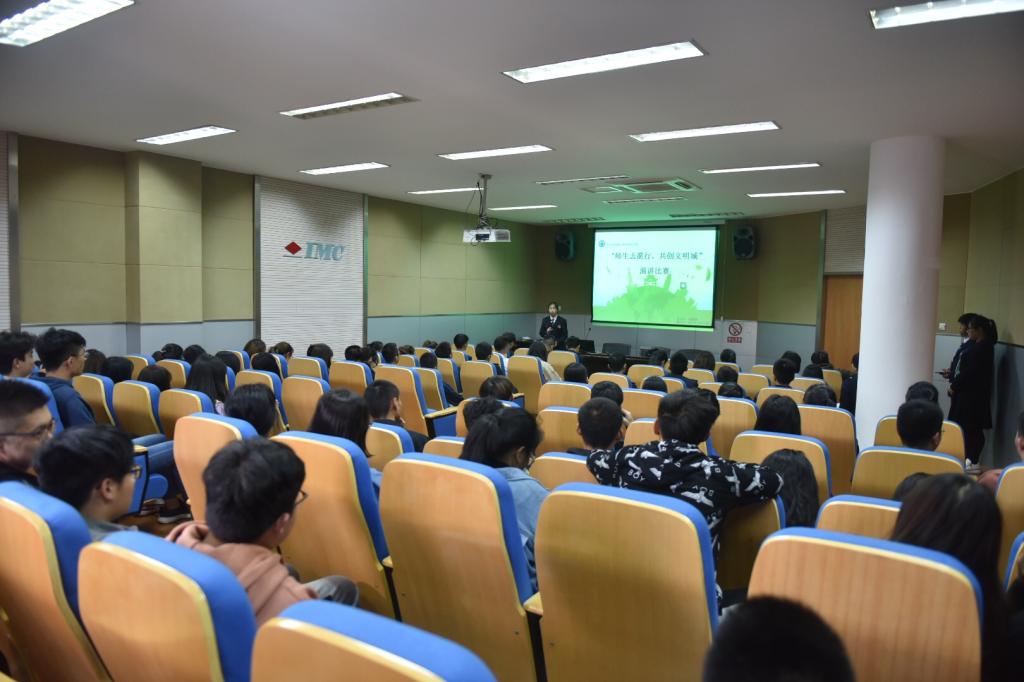 11月28日下午,由校团委举办的“师生志愿行,共创文明城”演讲比赛在船舶工程实训楼万邦厅圆满落幕。校团委副书记廉婧、各二级学院团委负责人出席比赛并担任评委,各学院70余名学生代表观看了此次演讲比赛。