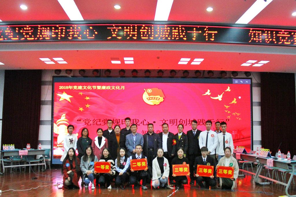 为贯彻落实“高质量推进党的建设”目标任务,积极打造“清廉海运”,深入推进创建全国文明城市工作,12月5日下午,2018年党建文化节暨廉政文化月活动之“党纪党规印我心 文明创城践于行”知识竞赛活动在图书馆报告厅举行。学校党委副书记胡国光、工会主席刘相、监察室主任何散芬、学工部部长王智明、校团委书记徐盈和宣传部副部长熊孜担任仲裁委员,党建文化节暨廉政文化月领导小组成员及相关部门负责人和320余名师生观看了此次竞赛。