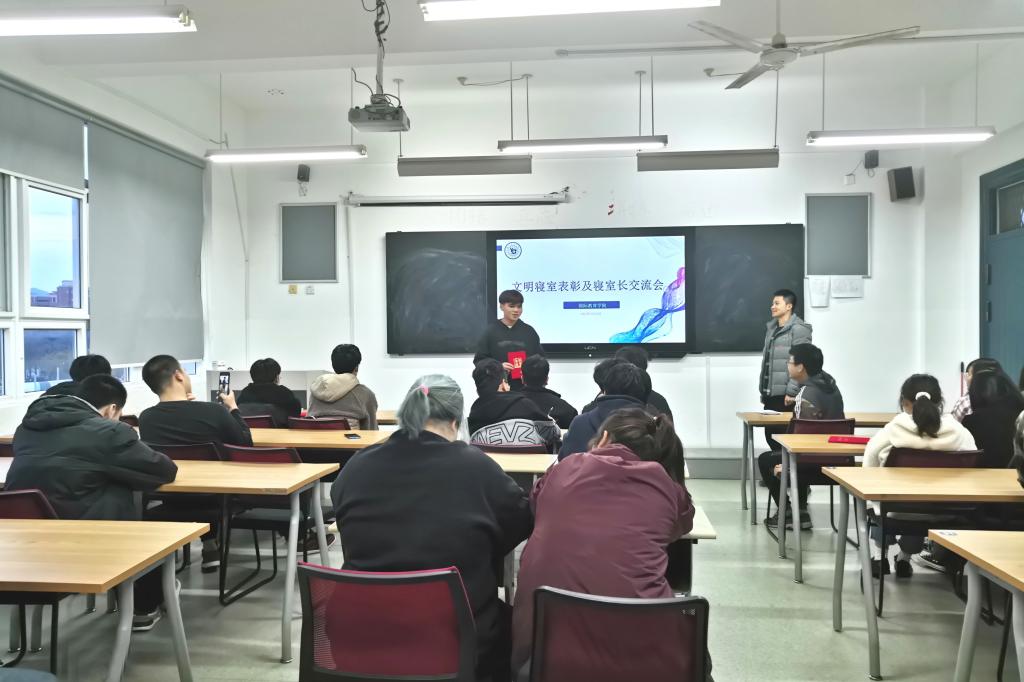 3月23日晚,国际教育学院在1412教室举行了文明寝室颁奖仪式及寝室长交流会。会议由国际教育学院党支部副书记颜天明主持,学院辅导员及50多名寝室长参加。