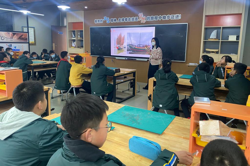 此次“送教上门”服务主要为学生开展“船模设计与制作(船模工匠职业体验)”项目课程,结合舟山“木船制造技艺”非遗项目,开展船模设计、船模制作等内容的教学,通过该课程的学习,培养中小学生的劳动素养及职业精神,扎实推进中小学“双减”工作。(海洋装备工程学院)