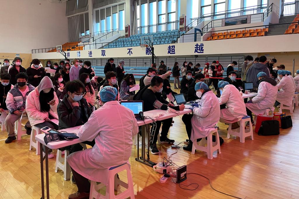 献血前,献血者认真如实填写健康信息,中心血站的工作人员耐心地为同学们答疑解惑,并详细说明献血前后的注意事项。现场还专门设置了热水、糖水供给处,为需要献血的同学提供温暖的保障。