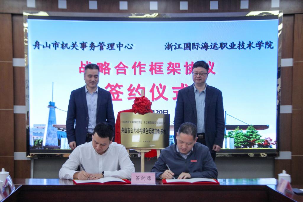 4月20日下午,学校与舟山市机关事务管理中心在行政楼401会议室举行了战略合作签约仪式,并为舟山市公共机构绿色低碳宣教基地揭牌。